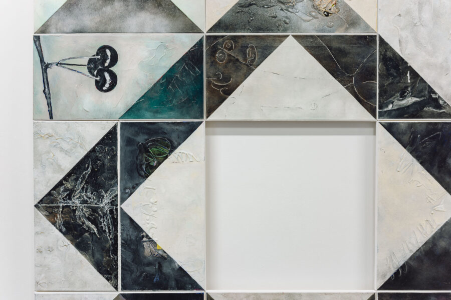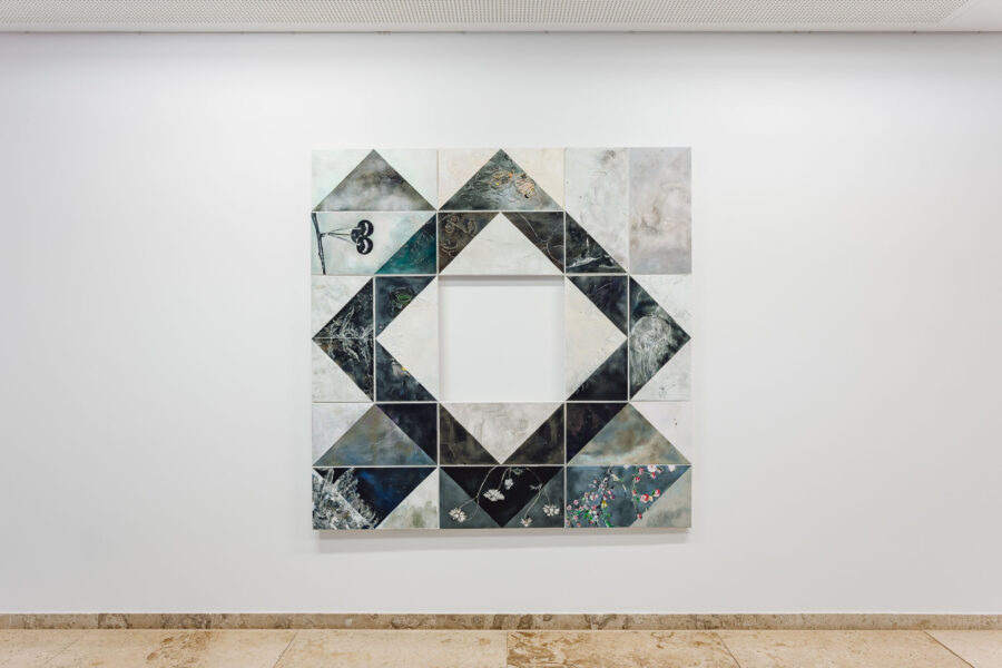 „Eine Künstlerin, die seit den 1980er Jahren das Tafelbild in seiner ganzen Komplexität und Mehrdeutigkeit erforscht. Sie arbeitet mit Ölfarbe auf Leinwand und schafft eine angemessene Form des Ausstellens.“